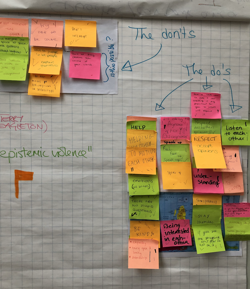 Potser hauria de dir alguna cosa sobre aquest poble, ja que tots tenen les seves tradicions. Aquest es fonamenta en els pilars de la modernitat occidental, que evita reconèixer com el seu propi «acumulat de coneixements i afectes, basat en quatre-cents anys de domini imperial neerlandès, exerceix un paper vital, tot i que no reconegut, en els processos dominants de producció de significat, inclosa la construcció del jo, que tenen lloc a la societat neerlandesa» (Wekker 2). Això, tal com he observat en el meu treball amb estudiants d’una escola d’art i disseny als Països Baixos [1]Les reflexions que exposo en aquest treball provenen de la meva experiència durant els darrers deu anys en una universitat d’art i disseny dels Països Baixos, on he impartit classes … Continue reading, fa que a algunes persones els sigui més fàcil examinar i explorar l’impacte d’estar en els seus propis cossos, i a moltes, moltíssimes altres, els sigui més fàcil practicar el seu propi rebuig. Ja sigui per no voler comprendre o explorar què significa això per a la seva manera de moure’s pel món, o com el món se’ls obre de maneres que els fan sentir bé. Aquest encoixinat incontestat contrasta radicalment amb aquells estudiants amb qui he parlat al llarg dels anys i que relaten una comprensió d’ells mateixos pertorbada i alterada. En recordar la seva experiència del primer any, l’Elif [2]Pseudònim. comenta:
