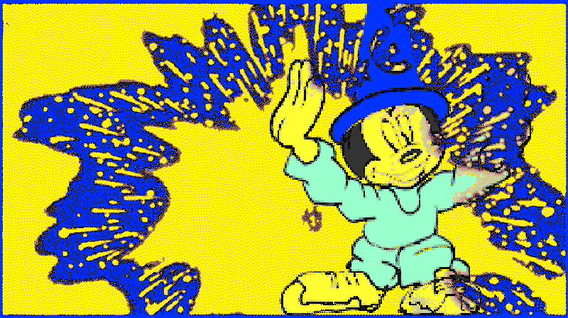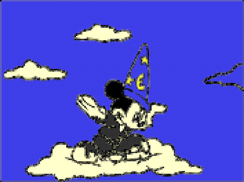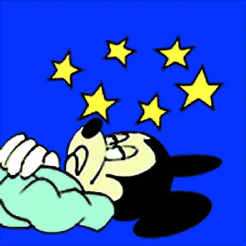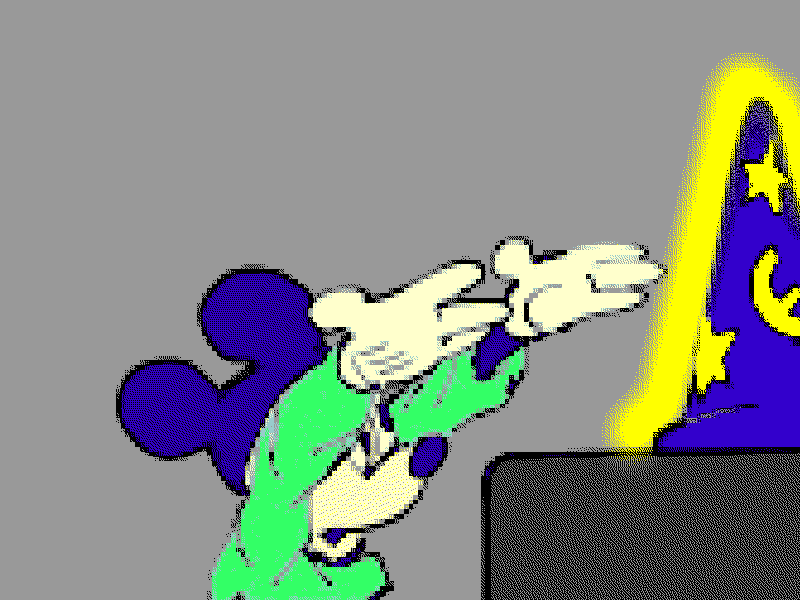 FR – Presentes per primera vegada en A-desk una petita constel·lació de gifs, en els que fas referències, d’una banda, al poema simfònic Una nit a la Muntanya Pelada de Musorgsky, inspirat en el conte de Gogol que relata un akelarre prop de Kíev i, d’altra banda, l’adaptació de Disney del poema de Goethe L’Aprenent de Bruixot encarnat per Mickey Mouse. Crec veure en la teva intervenció com ressona també l’actual conflicte rus-ucraïnès. Explica’ns una mica d’aquest nou treball.