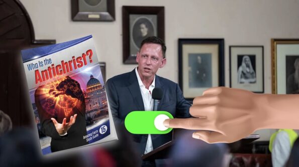 Thiel reinterpreta a la seva manera a Sant Pau, tractant-lo com un altre analista polític, i venent als que l’escoltaven que això de “tranquil·litat i pau” és el nou “eslògan de l’Anticrist”. La frase, extreta d’1 Tesalonicenses 5:3, li serveix per projectar una vella por religiosa sobre l’actualitat política: la idea que l’harmonia mundial és sospitosa per definició. Les susdites conferències barregen més versicles amb arguments d’inversió, profecies, deliris i planificació estratègica. Thiel converteix el ja esmentat katechon en quelcom semblant a “un principi de gestió de riscs”, “un dispositiu pel control de danys”. El seu paper com “empresari” ja no és fer avançar la història perquè abans ha d’aturar el col·lapse.
