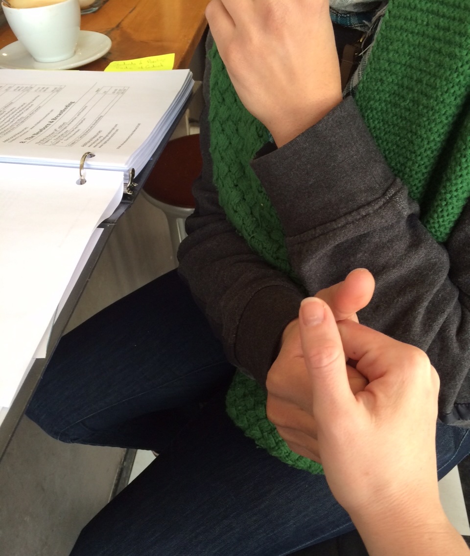 El 2015, com a esforç per examinar com la raça opera íntimament a la meva vida, vaig dur a terme The Touch Project. Durant dues setmanes, vaig registrar textualment i visualment cada cas de tacte que vaig trobar. Mantenint-me conscient de com utilitzava el meu cos en contacte amb els altres, vaig documentar les meves experiències: des de ser atapeïda contra desconeguts a l’autobús, fins a mans que em fregaven de forma visible, fins a abraçades de tot el cos; des de moments de repulsió —tacte inevitable // no desitjat, fins a desitjos on el tacte no estava permès. Vaig comptar com vaig tocar 31 persones, inclosos éssers no humans amb qui també vaig estar en contacte. A més d’aquests 31, hi va haver cinc casos en què vaig voler tocar algú però no vaig poder, a causa de restriccions o circumstàncies. D’aquests 36 casos, vaig poder fotografiar-ne 13.