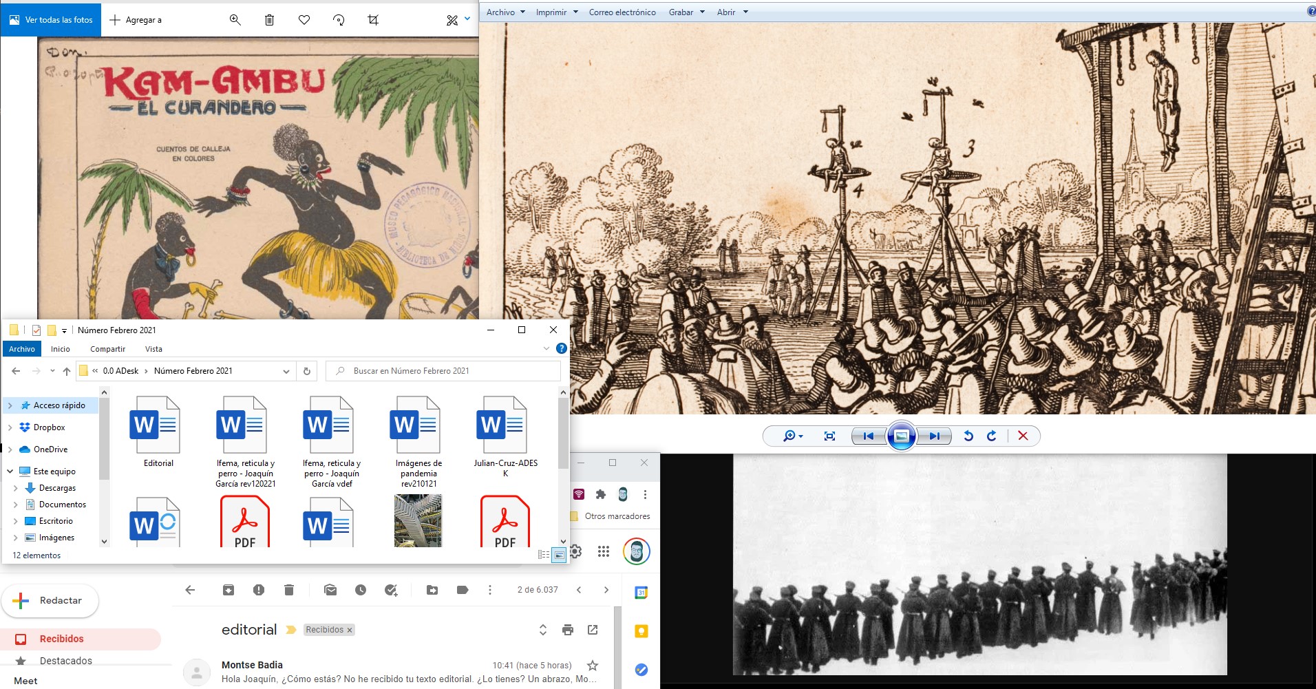 Durant aquest mes de febrer, hem volgut pensar des de les imatges, mirant-les una estona més llarga de l’habitual. Després, comentar-les i glossar-les, perquè una parrafada val més que mil fotografies. Per a això, vaig voler convocar a alguns artistes, a més dels coneguts i omnipresents teòrics de l’art (que som molts i ens reproduïm per espores). M’interessava, particularment, l’opinió dels pintors, que porten tota la vida treballant amb imatges i estant demodé (gent que encaixa i compon, en fi, tipus raríssims). Els temes podrien haver estat uns altres, però aquestes estampes (la rotativa, el papa en streaming, les revoltes i l’hospital prêt-à-porter) ens servien per a marcar quatre punts cardinals amb els quals orientar la discussió. Imatges poderosíssimes que, en la lleugeresa del nostre temps, passen amb la mateixa urgència amb la qual arriben.