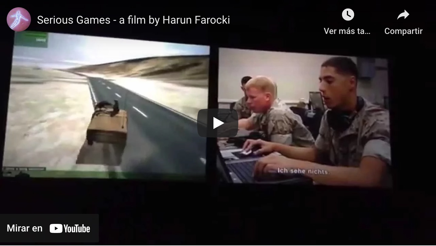 Els treballs de Harun Farocki, mostrats en l’exposició Visió. Producció. Opressió –a penes uns mesos de la seva defunció– posaven en relació cinema, tradició pictòrica occidental, videojocs i tecnologia visual de la guerra, per a proposar un argument: el mateix mecanisme cognitiu de l’abstracció, que tant ha permès l’avanç de la reflexió en les arts visuals, és el mateix mecanisme que va permetre la qualificació de les imatges dels aparells de guerra. Per exemple: alguna cosa que facilita que el pilot de guerra llanci bombes sobre un territori, és que en la imatge digital que veu des de la seva cabina no mostra éssers humans, si no palets, línies, ombres. És molt més fàcil aniquilar una abstracció que la complexitat d’un home amb cos i història. És fàcil llançar bombes sobre una imatge mediatitzada, que sobre un cos que suplica clemència. Però aquest no és l’únic exemple, també apareix un estudi de diverses escenes de treballadors sortint de la fàbrica de diferents pel·lícules de la història del cinema, i la seqüència que construeix Farocki ens suggereix com l’abstracció està en la base de la deshumanització: de la conversió de l’home en xifra. Aquest és només un exemple radical, un exemple extrem de com la visió és un òrgan que posat en primer pla i separat dels altres sentits, produeix una sensació de separació del món que ens envolta: ens posa a mirar-ho tot des de dalt, tot separat; com si no féssim part d’això que observem.