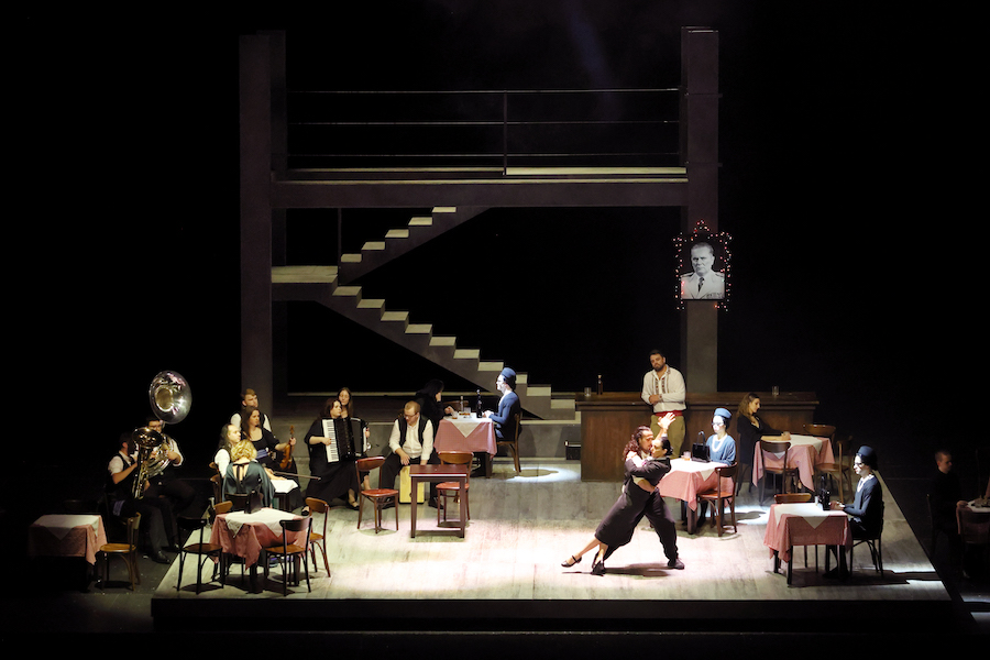 Al passadís que condueix a l’escenari apareix una banda de percussió i vents, seguida de Danica Abramović, la mare de l’artista. L’espectacle s’inicia amb un llarg lament fúnebre per Josip Broz Tito. Més que un homenatge, és el dol per un món desaparegut —la Iugoslàvia multicultural somiada— i la constatació que tota epopeia comença sempre amb una pèrdua. Danica, rígida i uniformada, diposita flors. Ella és la personificació del conservadorisme que l’artista necessita exorcitzar. A partir d’aquí, Balkan Erotic Epic es desplega com una epopeia sense herois: allò que s’hi narra no són gestes individuals, sinó cerimònies comunitàries de supervivència.