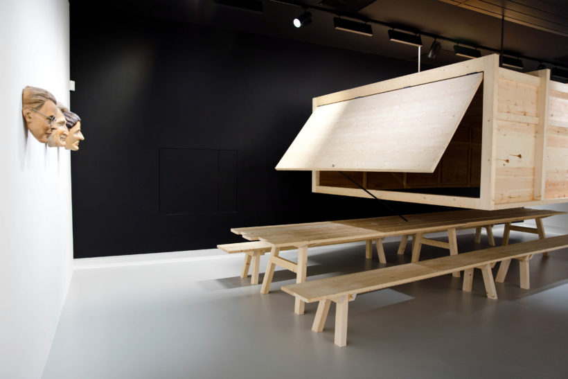 GARETH KENNEDY | This was a very important work for me to address the dark and reactionary underbelly of the words ‘tradition’ and ‘folk’, which are such preserves of the reactionary right but need not be. The work was produced in more reflective times perhaps (pre 2016). I was invited by Curator of Ar/ge Kunst in Bolzano, Emanuele Guidi, to undertake the first One Year Project there. Emanuele was interested in how I would respond to the surfeit of folk culture as heritage and touristic backdrop to this Alpine territory. As a German speaking region annexed by Italy after WW1, South Tyrol has a problematic history with regard to ideologically compromised scientific disciplines deployed in the region – Italian geographers and Austrian ethnographers both created myths of the ‘true origins’ of this people and place. My research focused on the so called Die Option, a 1939 agreement between the Axis powers, planning the relocation of the German speaking population. In a break with Nationalist Socialist ideology, the cultural and ethnic German population was given a choice between Blut oder Boden (blood or soil), i.e. a choice between relocating within the Third Reich and retaining their Germanic culture and identity, or becoming entirely Italianised. Almost forgotten about, but arguably the largest folklore/linguistic field investigation in history, a Kulturkommission was dispatched by Himmler to exhaustively document the material, linguistic, folk and music customs of this Alpine people. Their culture was to be preserved and made available to them after relocation to the newly occupied territories of the Tatra Mountains, Burgundy or the Crimea – this was ‘salvage ethnography’ by political diktat. My commission happened at an auspicious time when certain archives of the anthropologists involved became publicly available for the first time in 75 years. I was also very unsettled by the publication and dissemination of Nazi produced material, from books, to costumes, to postcards, in the post war period right up to the present day. I wished to enquire into how these representations dangerously influenced ideas of tradition and folk culture in the region. In response I commissioned traditional wooden mask carvers from across South Tyrol and Tyrol to carve masks of key figures from this fractious history and paired them with original archival material from their spurious research. This exhibition then became a public forum to unpack and deconstruct this material and it’s influences on identity formation today in the South Tyrol. The following year, with support from Künstlerhaus Büchsenhausen, the project crossed the Alps and was presented in an expanded form in the Tiroler Volkskunstmuseum in Innsbruck. This was especially charged as the Austrian presidential elections were ongoing at the time, with the far right wing candidate openly wearing a cornflower, the emblem of Nazi sympathisers in 1930’s Austria.