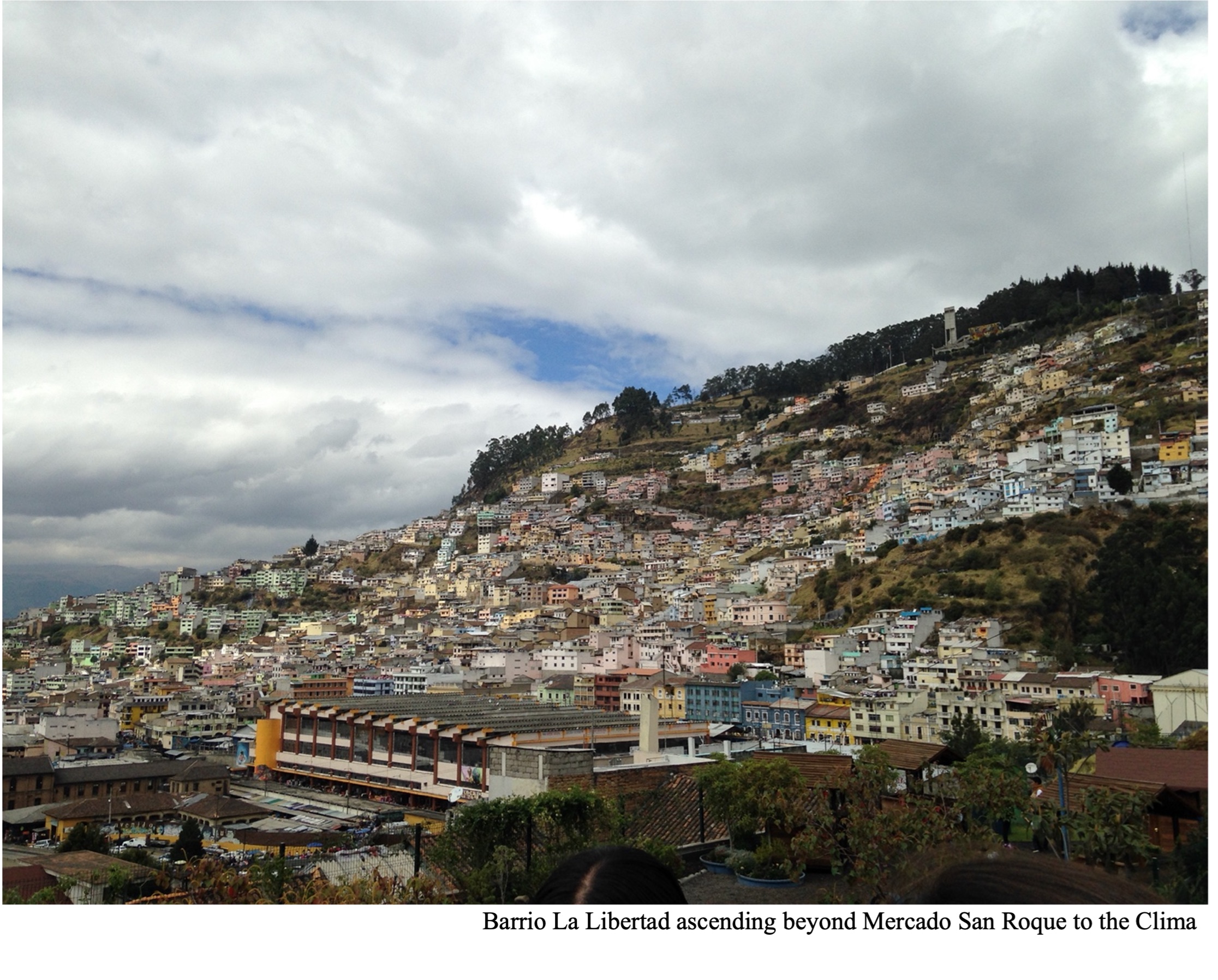 We were sitting in a hole-in-the-wall restaurant on Calle La Ronda, the only one open. He had wanted to show me a museum depicting Quito’s history with wax figures, but it was Sunday and the museums, along with nearly everything else, were closed. In front of the restaurant, meat was cooking on an open grill and a sign advertised $0.75 canelazos, a warm concoction of aguardiente, fruit juice, and spices. From where we were sitting, I glanced uphill to Mercado San Roque, a large wholesale and retail food market. My master’s thesis was about the various flows of value that move through the market, a project I hoped would demonstrate that urban and rural spheres were not actually distinct but blurred and blended. However, immersion in fieldwork had begun to break down boundaries far more personal than the abstract urban or rural. I found myself having difficulty determining whether my body and mind were moving through the past or the present, reality or fantasy.