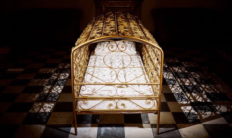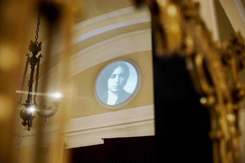 The polyphonic structure of the exhibition extends to the Teatro Pirandello, where Maro Michalakakos presents the sculpture Allerleirauh (2003), inspired by the Brothers Grimm fairy tale of the same name from 1857, in which a king’s desire for his own daughter reveals the perversion of power and beauty as condemnation. Alongside this gilded cage, another feminist piece, Siciliane, by writer Ester Rizzo in collaboration with curator Esther Regueira, rescues from oblivion Sicilian singers, actresses, writers, and activists—projected in a tondo format—in response to the absolute absence of women’s portraits in the theater. Siciliane demonstrates, through historical documents displayed in a second vitrine, that women have always been the social pillars of the island, even as official history insists on ignoring them.