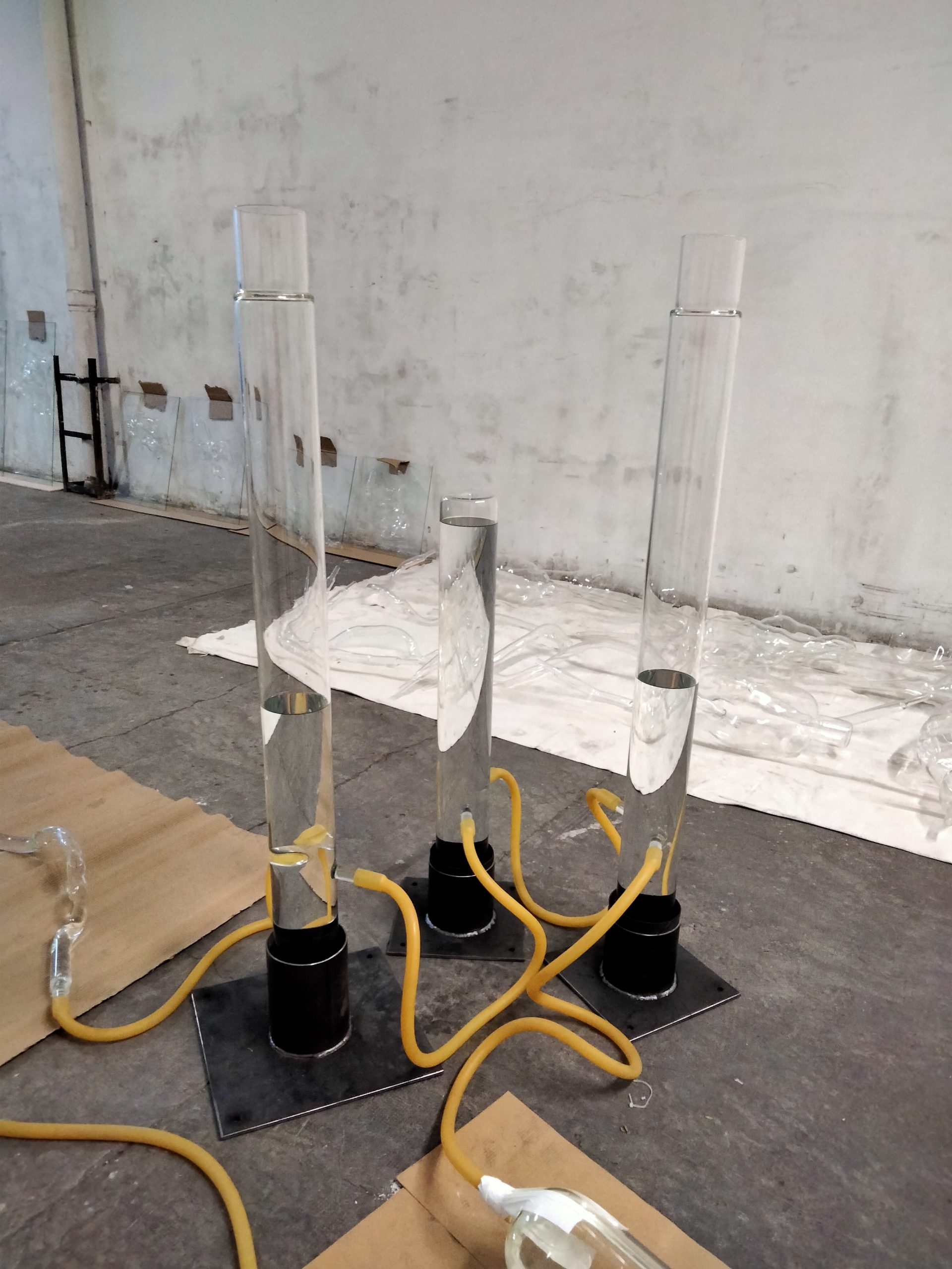 In the workshop of Lara Fluxà, in Fase, from October to March is cold, but as in all workshops there was heat, like fire fed with oxygen to twist the glass. It was an ember shared with Paco Chanivet while cooking a model of 8 meters of small pieces that were grouped organically to create families, relationships between them and total belonging.