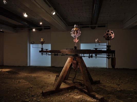 RZ: Paco, siento escuchar sobre tu padre – debió ser muy duro. El catolicismo tuvo un impacto enorme en mis años de formación, en particular por su conexión con la muerte y el más allá. En una de mis exposiciones recientes, Resuscitation, reflexionaba sobre el punto exacto antes de la muerte en el que algo vuelve a la vida. Pensaba en los humanos intentando salvar el planeta, protegiendo la naturaleza antes de que perezca. En Amber Chamber ideé una suerte de sarcófago para Chochol, un personaje del folclore polaco que actuaría como una metáfora de la resurrección. Chochol era un personaje de la novela La boda de Stanisław Wyspianski, lo creó porque veía que sus contemporáneos no respetaban a la naturaleza. La forma de Chochol proviene de los almiares que protegían pequeños árboles durante el invierno. En la performance, entono una canción tradicional de mi región en el noreste de Polonia, un área mayoritariamente católica en la cual muchas personas son además curanderas, videntes y ancianas llamadas ‘susurradoras’, formando una extraña combinación de catolicismo y paganismo. La canción se canta mediante un método tradicional llamado ‘canto blanco’, empleado sobre todo las mujeres en los funerales. En la letra, una persona se despide del mundo; me interesaba si podría interpretarse como una despedida de la Tierra como planeta, vista no desde el duelo sino desde la expectación de nuevos comienzos. La performance era el resultado de mi investigación en torno al cosmismo soviético y Nicolai Fyordorov; sobre cómo pensaban que la humanidad solo podría hallar la felicidad en un lugar que no fuera la Tierra.