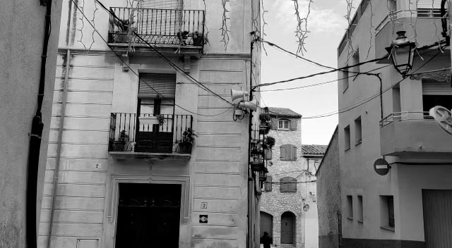 Parlante en una de las calles del pueblo. Detalle del sistema de megofonía. Foto por Daniela Medina Poch