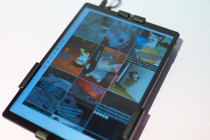 Raquel Hervás Gómez continúa la conversación sobre la salud mental en la era digital. En un iPad se muestra la página de Instagram @ehsoytugatitopoeta donde ha publicado memes de gatos con ansiedad para aliviar su propio estrés. Muchas de las personas que visitaron la exposición o que siguen la cuenta encontraron el trabajo irónico de Gómez especialmente identificable, ya que la ansiedad es una emoción ampliamente extendida hoy en día.