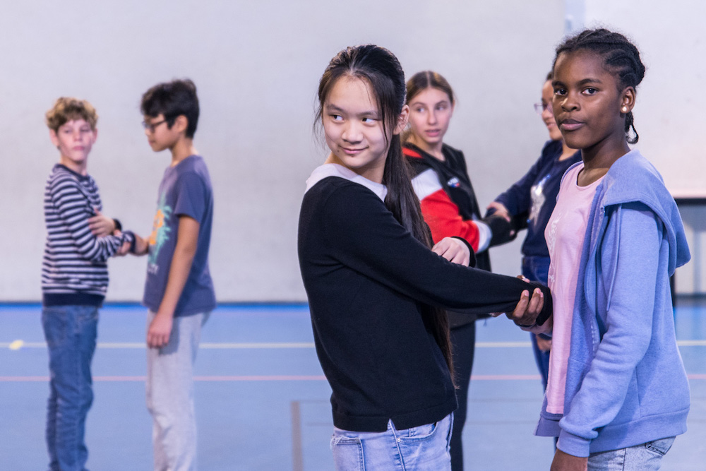 Stine Marie Jacobsen, Group Think (2020) Group Think es un proyecto que pretende ampliar el programa actual de educación formal en las escuelas impartiendo ideas sobre inteligencia colectiva, técnicas de formación en protesta civil no violenta y primeros auxilios en la educación deportiva. El proyecto introduce una serie de ejercicios que simulan los movimientos de las multitudes y fomenta la concienciación sobre la capacidad de actuar de forma solidaria y colectiva por la justicia global. Estos ejercicios han sido coescritos y probados por la artista danesa Stine Marie Jacobsen, los artistas de circo del socio del proyecto Archaos y ochenta alumnos de la escuela de Marsella durante Manifesta 13.