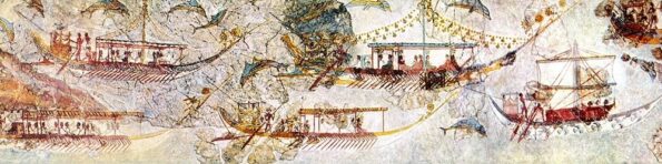 [Imagen destacada: Detalle del «Fresco de las naves» de Akrotiri (isla de Santorini, Grecia), datado en torno al segundo milenio antes de Cristo]