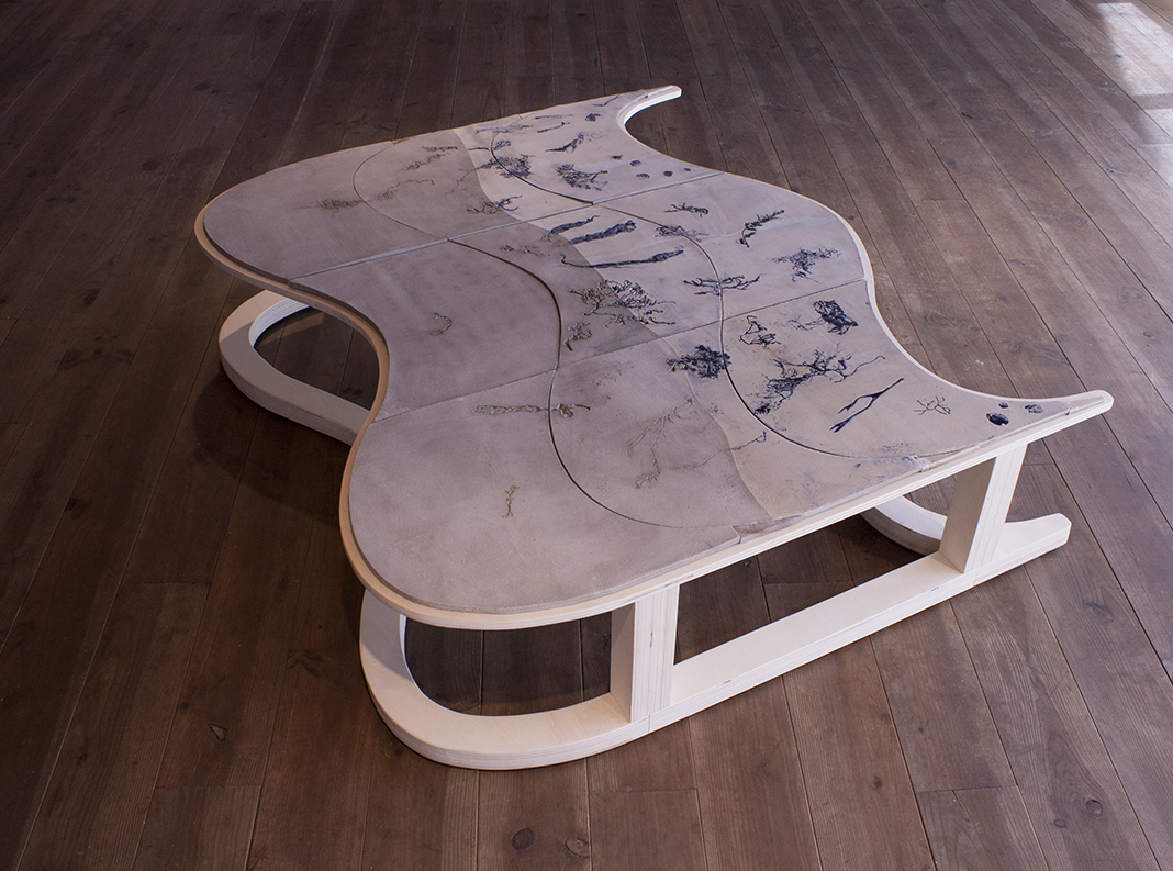En Villava, la naturaleza acapara una especial atención, en el viejo batán la diáfana agua recorre su cauce, flaco por la sequía. En este contexto se muestra Tentare, la obra de Raquel Asensi, bajo las angostas vigas del siglo XII. Un arte sobrio que conecta con lo minúsculo a donde no llega la mirada, pero sí la intuición. El principal formato que trabaja es la cerámica, combinándola con diferentes materiales, como la madera en Abyss-ãlis. En esta pieza el elemento central lo constituyen las algas del cantábrico que se han movido a aguas más profundas por el calentamiento global. En otra obra, Ideonella, representa a pequeñas bacterias que son capaces de favorecer la desintegración del plástico PET. La esencia de su trabajo ilumina una realidad fuera del campo de visión, la artista aparece como una productora al servicio de la ecología. En la obra del Nacimiento de Ideonella, combina materiales naturales y artificiales como reflejo de la realidad postindustrial, ilustrando la defunción de la estética sin mensaje. En la fotografía aparece una mujer cubierta de plástico y con la pieza de cerámica vidriada sobre el búnker de Azkorri, anunciando así la muerte de la obra de Botticelli.