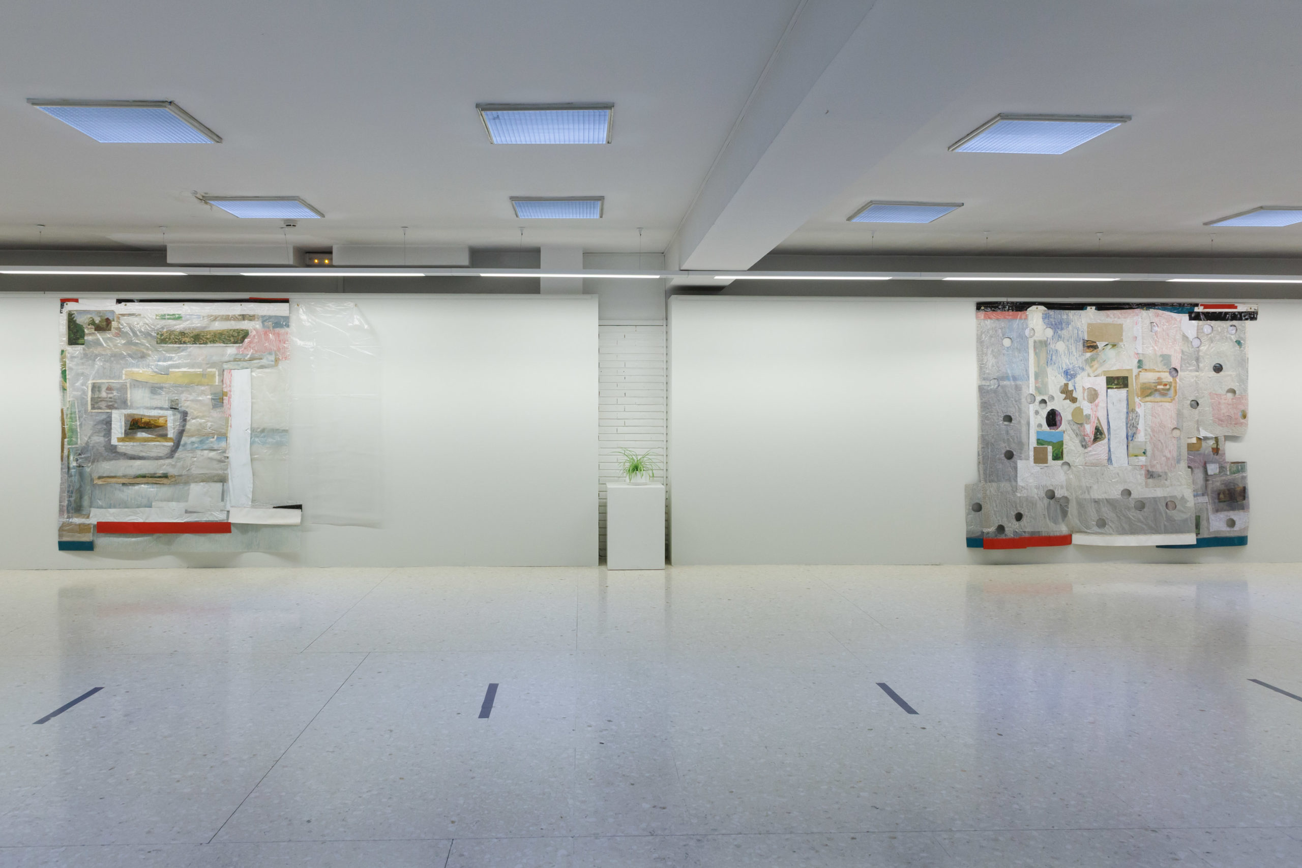 Dos murales de la exposición Paisaje sin mundo de Oier Iruretagoiena, en la UPNA. Crédito: Fotos UPNA